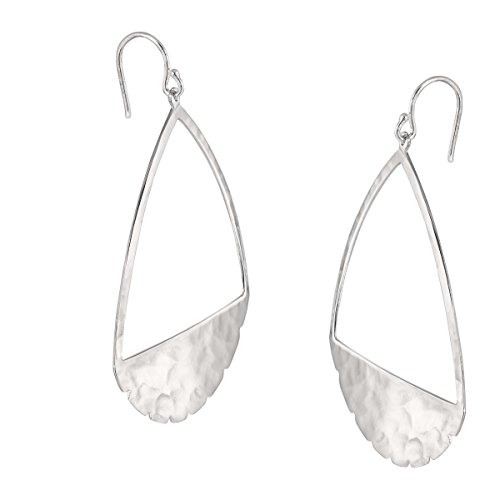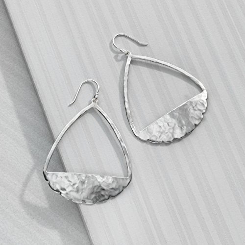 Scalloped edges and hammered sterling silver give these oversized drop earrings the edgy look your cargo jacket and loose tank top needs. Earrings measure 2 1/2 by 1 3/4 inches, finished with ear-wire back-findings. Piece comes with a ".925" sterling silver stamp as a symbol of guaranteed product quality.