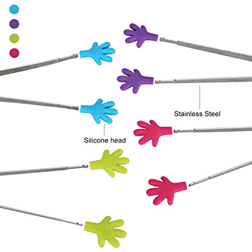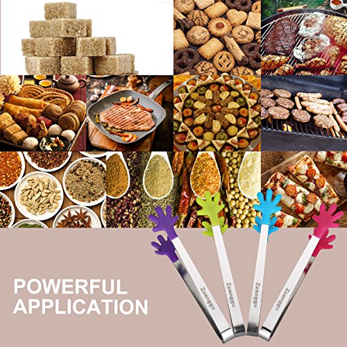 Zzanggu Sugar Tongs (Set of 4) Stainless Steel Sliver Tea Party Mini Palm Handle with Skid-proof Silicone for Kitchen Tongues Food Folder and Ice Clip,5-inch Long (4 Colors)