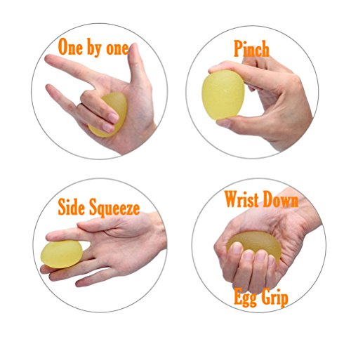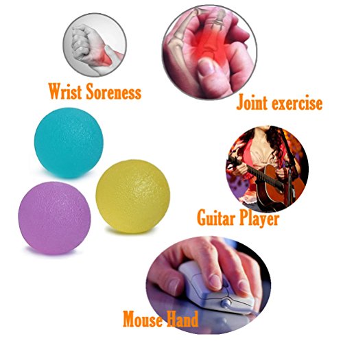 The size of the hand exercise balls is 2.28" x 1.75" (5.8 x 4.4 cm),benefits rheumatoid arthritis, rock climbing,carpal tunnel rehabilitation, golf, violin, tendonitis, handball, guitar, piano,tennis etc.
