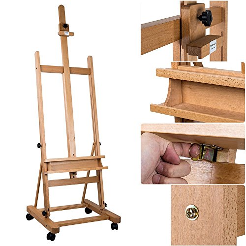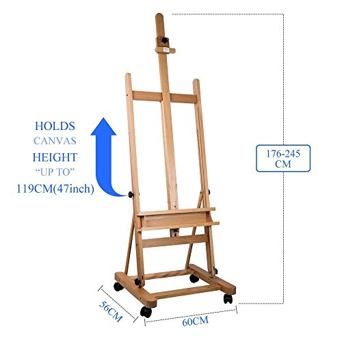 TOPHOMER ADJUSTABLE STUDIO EASEL MOVABLE ARTIST PAINTING EASEL DURABLE CLASSIC BEECH WOOD, HEIGHT 69.3”-96.5” HOLDS CANVAS HEIGHT UP TO 47”