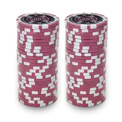 Brybelly Ace Casino Poker Chip Heavyweight 14-gram Clay Composite - Pack of 50 ($5000 Pink)