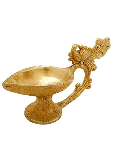 Zap Impex Brass Diwali Diya Oil Lamp for Puja Home Décor Peacock Gift, 3.15 Inches