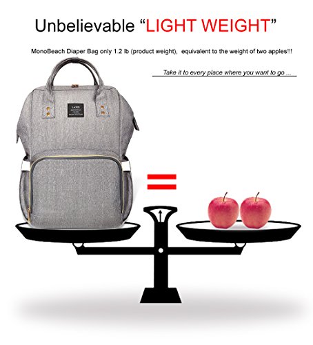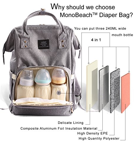 Diaper Bag Travel Nappy Backpack - Waterproof Roomy Baby Bags Multi-Function Nursing Shoulder Bag for Mummy and Baby Care by MonoBeach (Linen)
