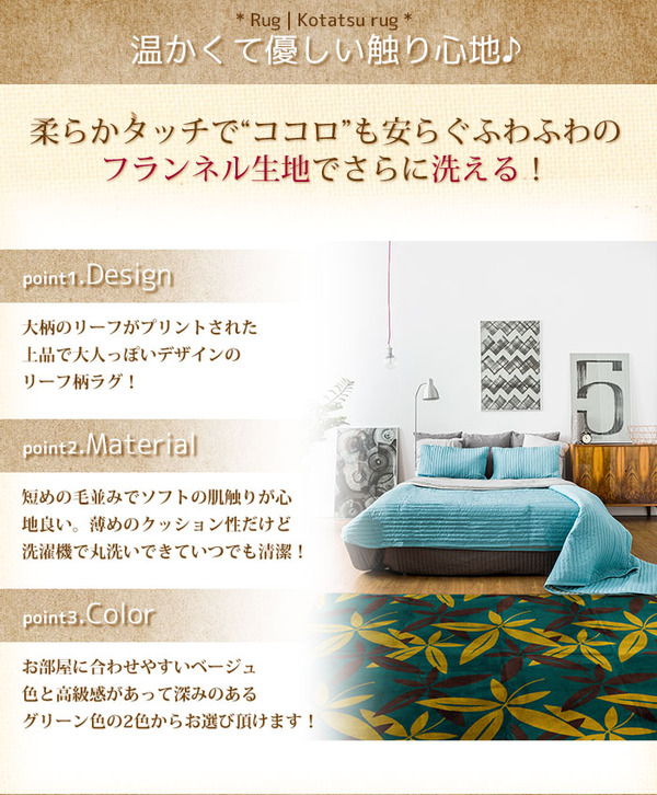 ●軽くて洗えるリーフ柄のラグ!