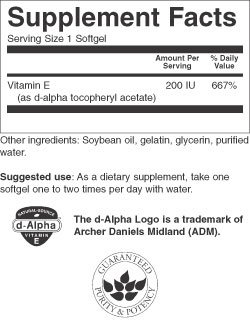 -. Binding : Health and Beauty -. Brand : Swanson Premium -. EAN : 0087614011363 -. Feature : Swanson Premium / Swanson Natural Vitamin E 200 Iu (134.2 mg) 100 Sgels / Per GMP guidelines set forth by the FDA, most products are formulated for 24 months from the date of manufacture. Liquids and probiotics are formulated for 12 months. -. Label : Swanson Premium -. Manufacturer : Swanson Premium -. Model : Swanson-SW136 -. MPN : Swanson-SW136 -. PackageQuantity : 1 -. PartNumber : Swanson-SW136 -. ProductGroup : Health and Beauty -. ProductTypeName : HEALTH_PERSONAL_CARE -. Publisher : Swanson Premium -. Studio : Swanson Premium -. Title : Swanson Natural Vitamin E 200 Iu (134.2 mg) 100 Sgels -. UPC : 087614011363