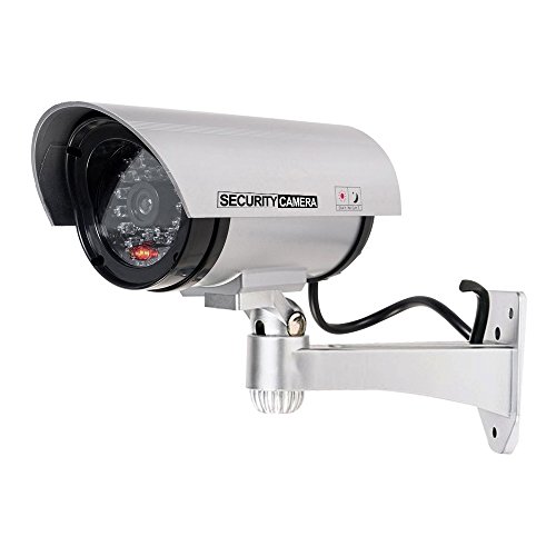 Rraycom Dummy Fake Surveillance Security CCTV Bullet Camera Indoor Outdoor with LED Light + Warning Security Alert Sticker