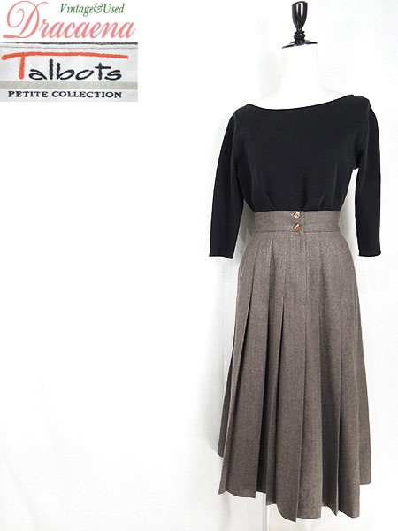 Ladies ブランドTalbot タルボット カラーグレー・茶 メール便不可 コンディション★★★ 素材ウール100% 表記サイズ10 スタッフコメント太めのプリーツが施されたロングスカートです。落ち着きのあるブラウンかかったグレーカラーが素敵です。 実寸サイズ 着丈 80 cm ウエスト 27 インチ( 68 cm) ※ウエスト・ヒップ以外は平置き採寸【code】#c