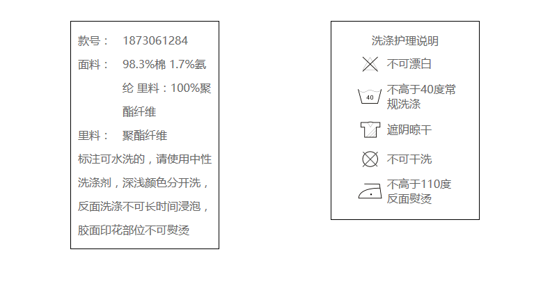 98.3%棉 1.7%氨纶 里料:100%聚酯纤维