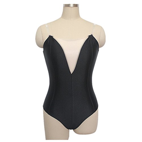 HDW DANCE Women Ballet Dance Leotard Nude Insert Front Clear Adjustable Straps Performance Costume
