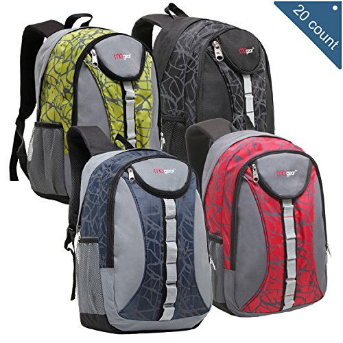 Studio : MyGift Publisher : MyGift Product Description These durable polyester backpacks with urban splatter design are ideal as a school bag, day pack or as a carry-on bag on a plane. This case of 20 book bags come in 4 different colors: 5 Red, 5 Green, 5 Black and 5 Navy Blue. Features a daisy chain on the front of the backpack for attaching extra gear. Two mesh water bottle pockets have been placed on each side of the backpack for maximum hydration access. Each backpack has extra padding on the back panel and adjustable s-curve shoulder straps for extra comfort. Dual zipper compartments make it easy to carry your school items like binders and books or camping gear, while keep them organized. These sturdy and modern backpacks are the perfect choice for any adventure. **Official MGgear product by MyGift.** Main dual zippers compartment with rain flip (in inch): 17.75 H x 12.5 W x 6.5 D. Approximate Dimensions (in inches): Main dual zippers compartment with rain flip (in inch): 17.75 H x 12.5 W x 6.5 D. Second dual zippers compartment (in inch): 16.0 H x 10.0 W x 1.75 D. 0 |