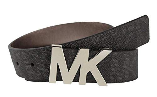 Michael Kors Women's Signature Belt Black with Silver MK Buckle (Medium)