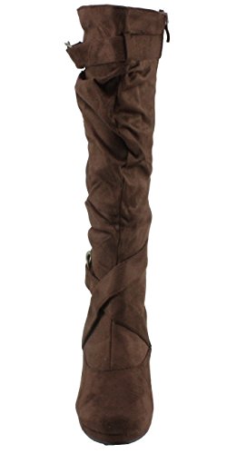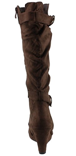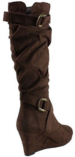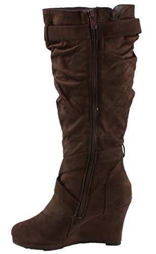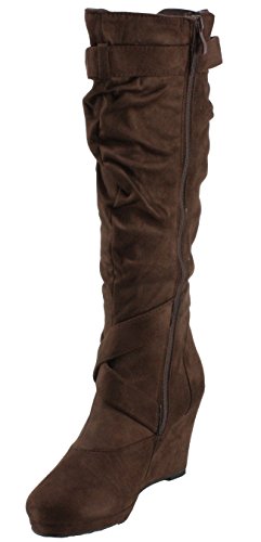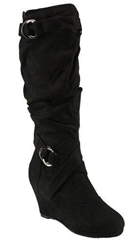 Binding : Apparel Product Description women's wedge heel boots, faux suede upper, round toe, wedge heels, low platform, slouchy shaft, two buckle decor on the side. Please contact us if you are not sure about size fit. We will be glad to do a toe to heel measurement for you if you let us know the size. 0