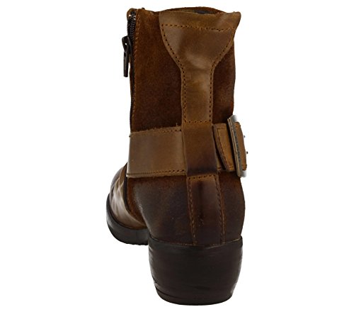 Product DescriptionFantastically wearable ankle boot in camel leather and oil suede. With buckle detail at the ankle, side zip for easy on and off and ruched leather uppers.0