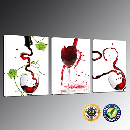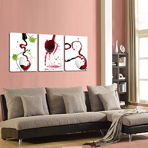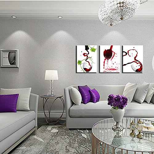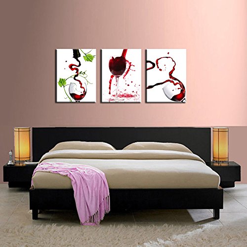 -. Title : Creative Art - Large Red Wine Glasses Canvas Art, Picture Painting on Canvas P.R.Int with Framed, Modern Home Decorations Wall Art Set of 3 Each Is 16''x20''