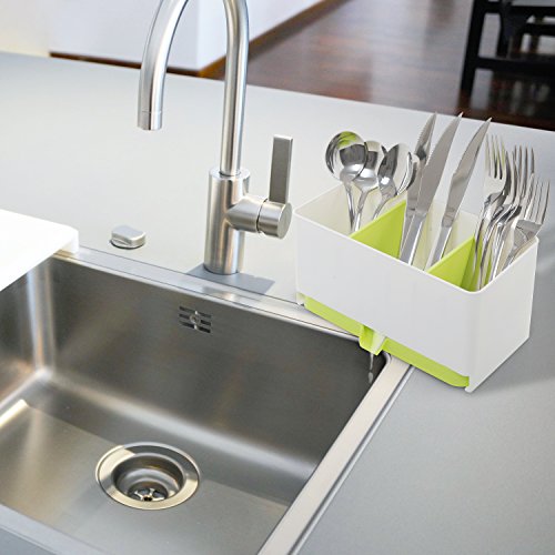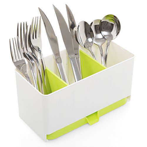 Plastic Utensil Rack, Countertop Drying Draining Tray, Green & White