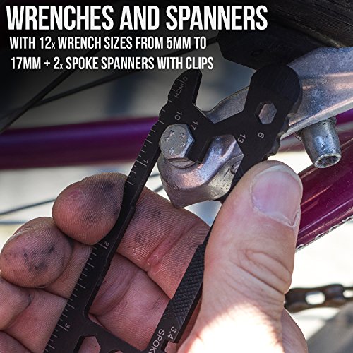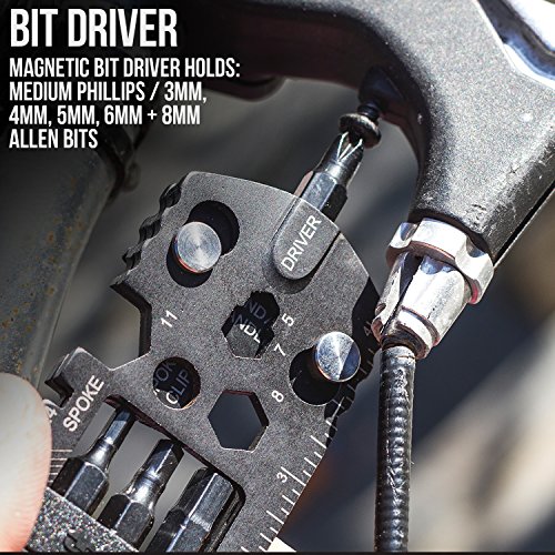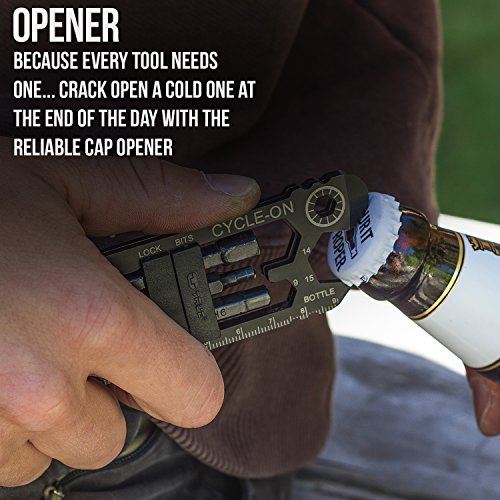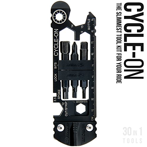 Studio : NEBO Publisher : NEBO Binding : Automotive Product Description The newest bicycle tool from NEBO takes slim to a whole new level. At 12mm at the thickest point, this 30 tool kit contains all of the essential needs for the bike athlete and enthusiast. A truly universal product that can be easily carried in your pocket, in your bike bag or in it's cowhide leather carrying pouch. Made with black titanium coated 420 grade stainless steel, this kit is ready to help with any issues you have while on the road. Easily a great gift for a family or friend! The tools included are as follows: Magnetic Bit Driver, 2x Spoke Clips, 5mm Wrench, 7mm Wrench, 8mm Wrench, 9mm Wrench, 10mm Wrench, 11mm Wrench, 12mm Wrench, 13mm Wrench, 14mm Wrench, 15mm Wrench, 17mm Wrench, 3.3mm Spoke Wrench, 3.4mm Spoke Wrench, 8mm Allen, 6mm Allen, 4mm Allen, 3mm Allen, Medium Phillips Driver, a File, 1/4 Inch Bit Driver, 6mm Wrench, 2x Tire Levers, Inch Ruler, CM Ruler, Cutter/Stripper/Crimper and a Bottle Opener! 0