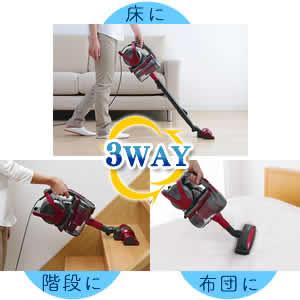 손쉽게 집안 청소스틱 청소기 핸디 청소기, 이불 청소기의 3way로 사용할 수있다.바닥과 계단은 물론, 함께 이불 구이 헤드로 교체하면 이불 청소기로 사용할 수있다.