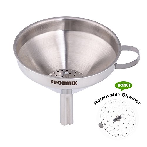 - TOUGH STAINLESS STEEL- Keep your kitchen stainless steel.SUCHMIX'S Funnel is made from food grade stainless steel that not only gives the products a bright, clean finish, it also makes them durable through years of use. Thanks to high-quality materials, you can count on these funnels to deliver long-term performance and decades of convenient pouring.
