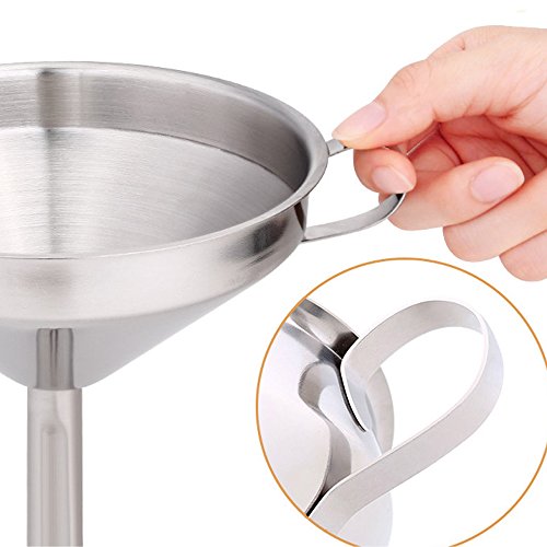 - HUNDREDS OF USES - This funnel with strainer is perfect for transporting liquids quickly & accurately. It also can be used to sift dry ingredients like flour, salt, sugar, spices etc.