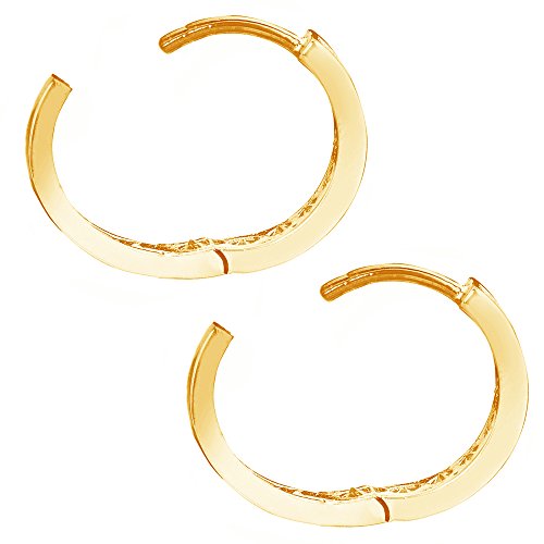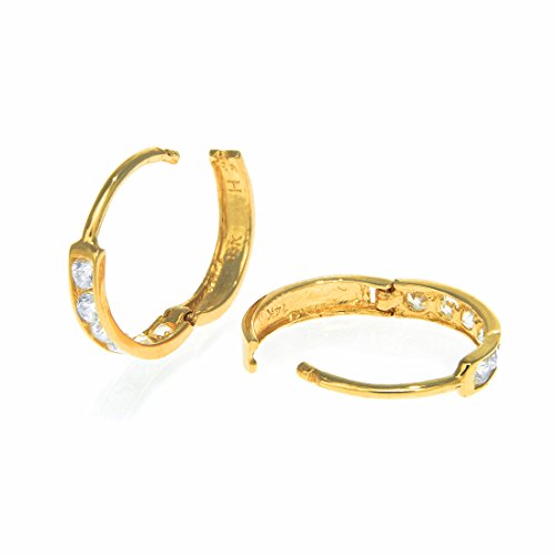 Genuine 14k solid gold classic style huggie hoop earrings with brilliant white cz stones