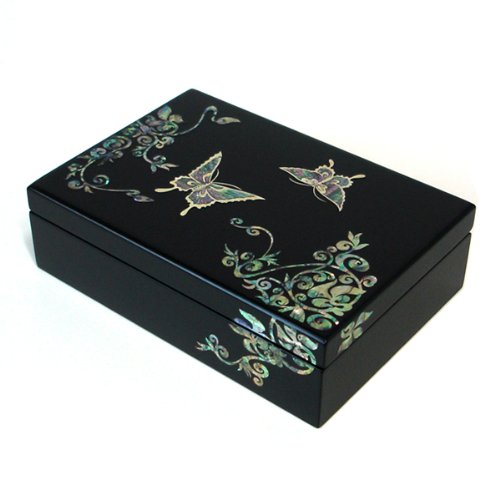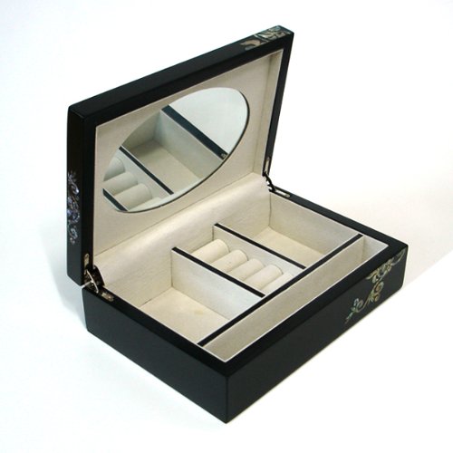 - Title : Mother of Pearl Butterfly Asian Lacquer Women Black Small Wooden Mirror Travel Jewelry Trinket Keepsake Treasure Gift Girls Jewel Ring Box Chest Case Organizer
