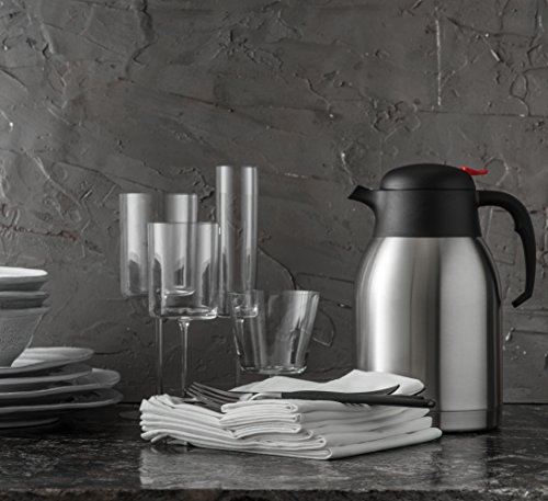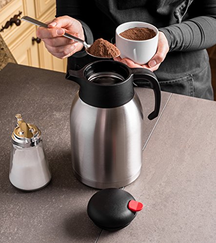 • PROFESSIONAL MANUFACTURING, PROFESSIONAL APPEARANCE: A brushed-chrome exterior is comfortable in any boardroom or guesthouse, but this insulated carafe is also uniquely structurally solid. With a double-walled body made from sturdy 18/8 stainless steel, this carafe will help entertain company for years.