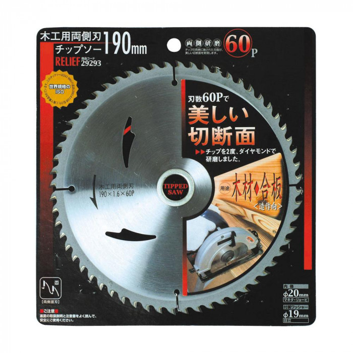 | サイズ | 外径Φ190mm、内径Φ20mm、刃厚1.6mm 個装サイズ:21×23×1cm |