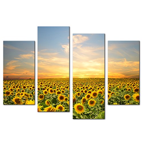 -. Title : 4 Panels Canvas Painting Sunflower Picture P.R.Inted Landscape Painting Giclee Artwork Stretched and Framed Wall Art For Home Decoration