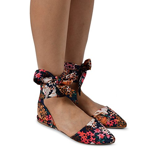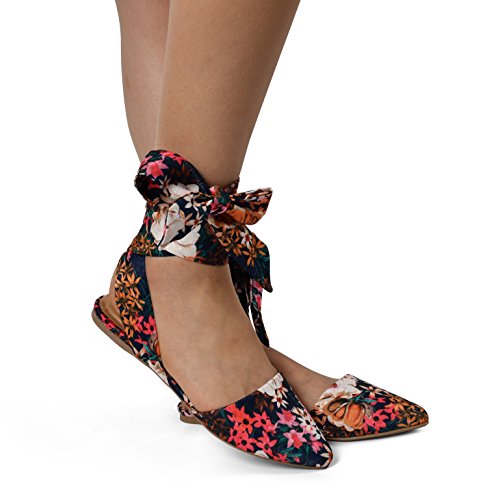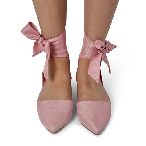 Women's Almond Toe Wrap Up Satin Ribbon Tie Lace Up D'orsay Flats Shoes by LUSTHAVE