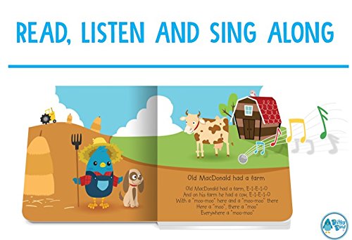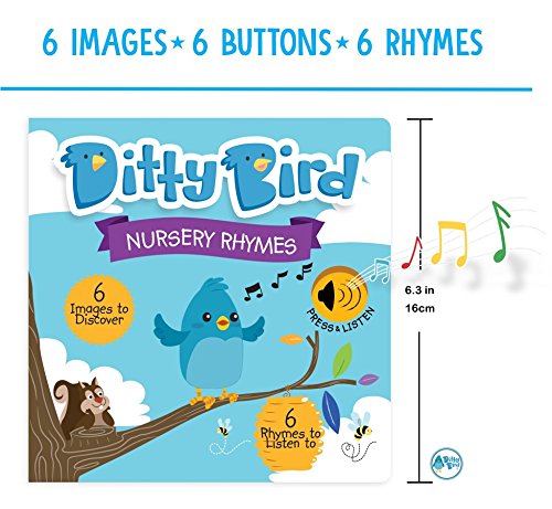 EASY, FUN, GREAT TO SING ALONG: Read, listen, and hum along as Ditty Bird sings your favorite Nursery Rhymes. The electronic push button on every spread triggers one of the six best-selling rhymes sung by children. The beautiful and colorful images will hold your baby's attention even longer. Includes: Itsy Bitsy Spider, Baa Baa Black Sheep, Hickory Dickory Dock, Row Row Row your Boat, Twinkle Twinkle Little Star and Old MacDonald had a farm.