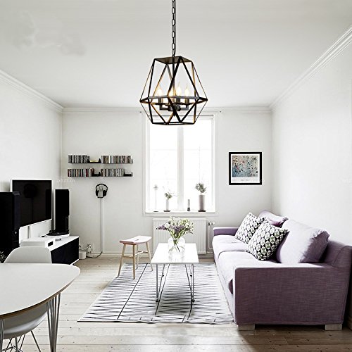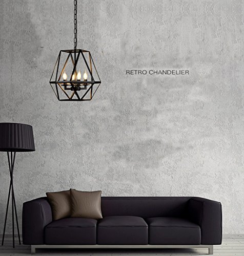 SUSUO Lighting Industrial Vintage 4-lights Candle Chandeliers Large Size Cage Lamp Rustic Art Decor
