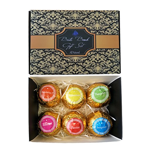 -. Feature : Set includes six 4.1 oz bath bombs: Invigorate, Rejuvenate, Tranquility, Revelation, Blossom and Passion. / Our Formulas are full of antioxidants to cleanse and detox, heal and nourish. / Relaxing bath aromatherapy that's fun and easy to use. / You can shop with confidence as these are Vegan, Paraben Free, Non-GMO, Cruelty Free, Bath Bombs.
