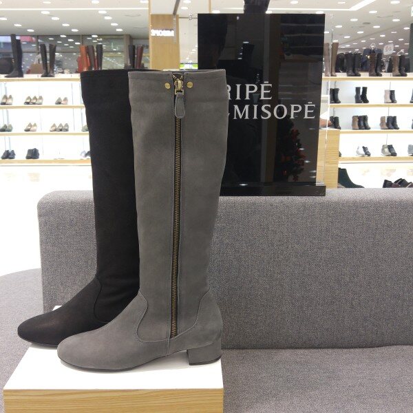 - 심플한 집업 롱부츠에 지퍼 장식이 다리 라인을 날씬하게 잡아주어 핏감이 우수하게 연출되는 플랫 롱부츠입니다.