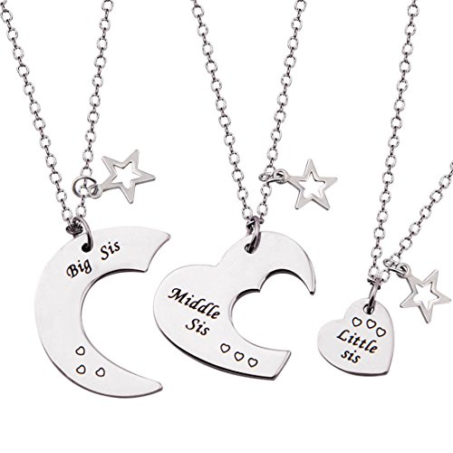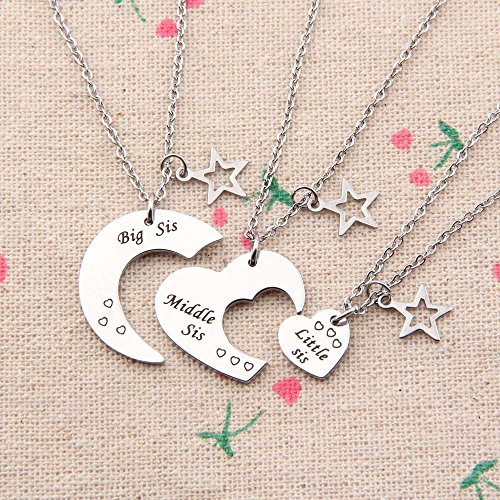 Adorable big sis middle sis and lil sis necklace jewelry also can send your best friend. It is packed with a c velvet pouch,ready for gifting.Perfect gift for you!