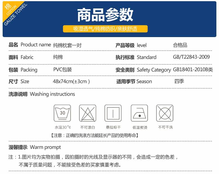 Pillowcase size: 48x74cm