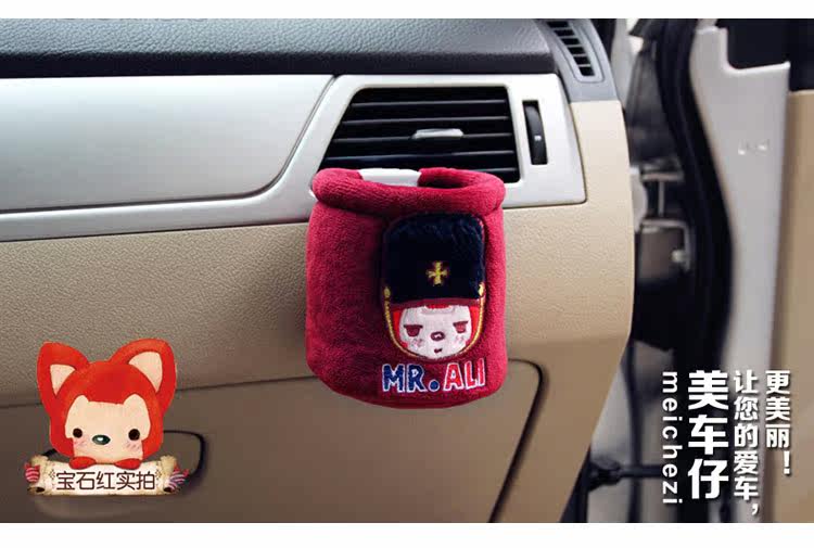 新款蒙奇奇汽车空调出风口置物筒桶袋 可爱卡通车用手机饮料架