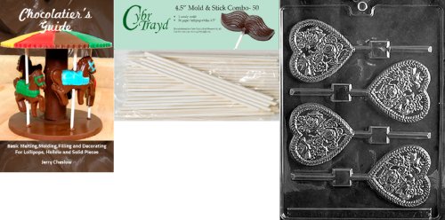 Cybrtrayd 'Heart Pop with Birds and Flowers' Valentine Chocolate Candy Mold with 50 4.5-Inch Lollipop Sticks and Chocolatier's Guide