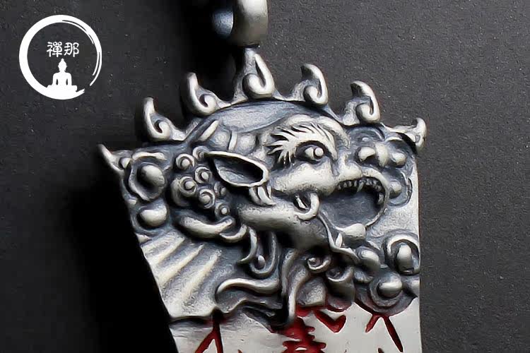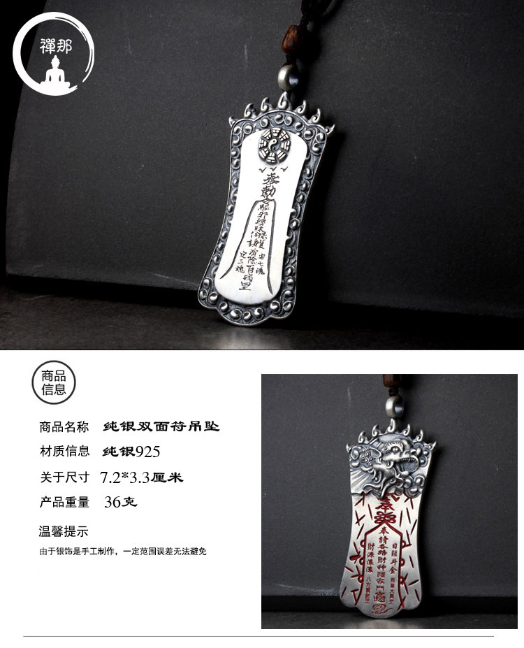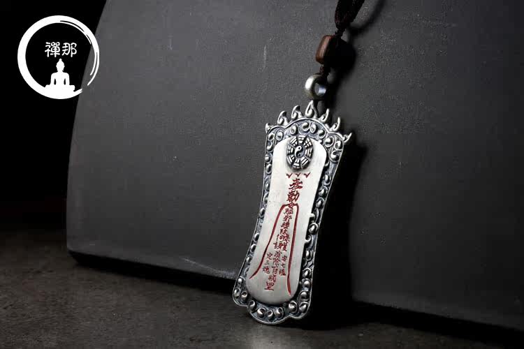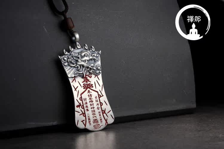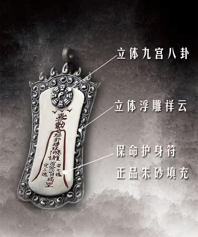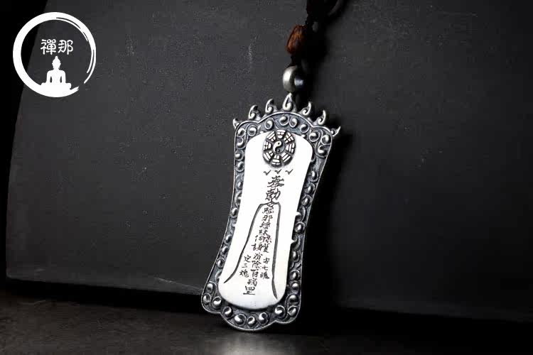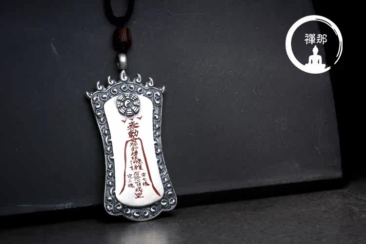 纯银貔貅招财护身辟邪开光八卦朱砂符挂件吊坠个性复古饰品男项坠