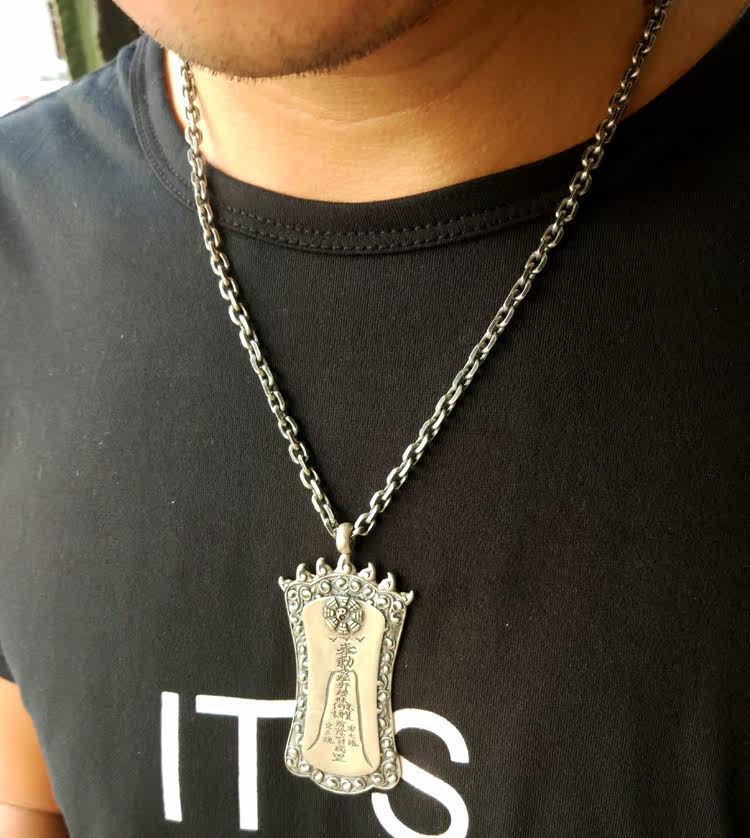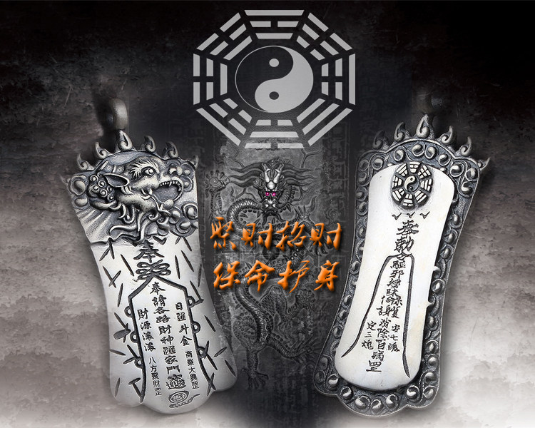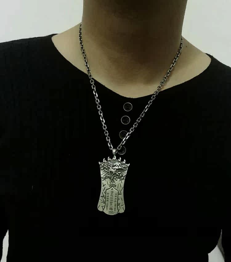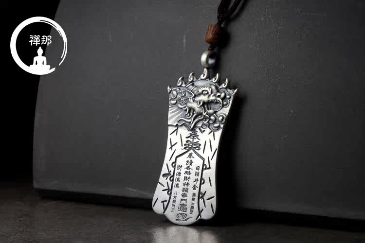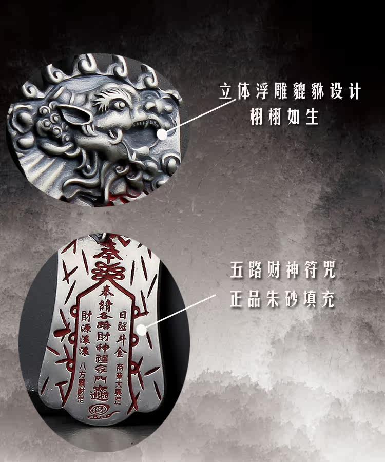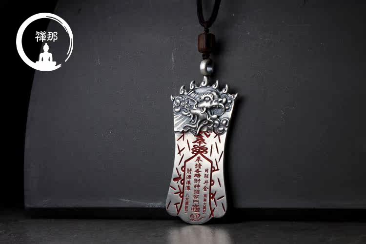 纯银貔貅招财护身辟邪开光八卦朱砂符挂件吊坠个性复古饰品男项坠