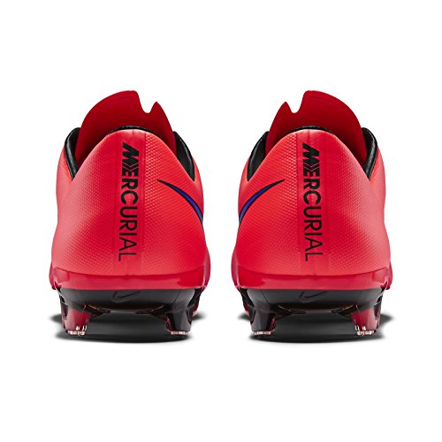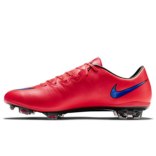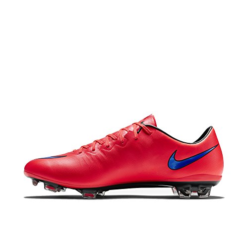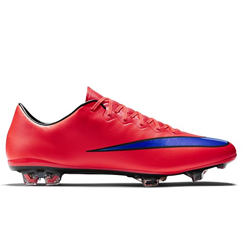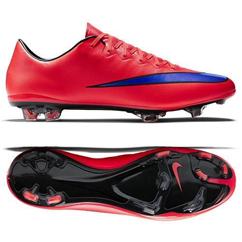 Binding : Apparel Product Description PRODUCT DESCRIPTION Nike Mercurial Vapor X FG Nike Mercurial Vapor X (FG) EXPLOSIVE SPEED. Nike Mercurial Vapor X (FG) is made for the new generation of football masters. This lightweight, elite performance boot optimizes explosive speed with an updated Vapor traction system while the micro-texture upper adds grip for enhanced ball control. Tongue-less upper wraps the foot for a locked-down fit. Micro-texture synthetic upper for barefoot feel and high-speed control. Lightweight nylon chassis plate with Vapor traction system for responsive grip. Midfoot reinforcements enhance lockdown. 4-stud heel design offers optimal penetration and stability. Designed for play on firm, natural surfaces. Synthetic Leather 0