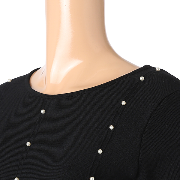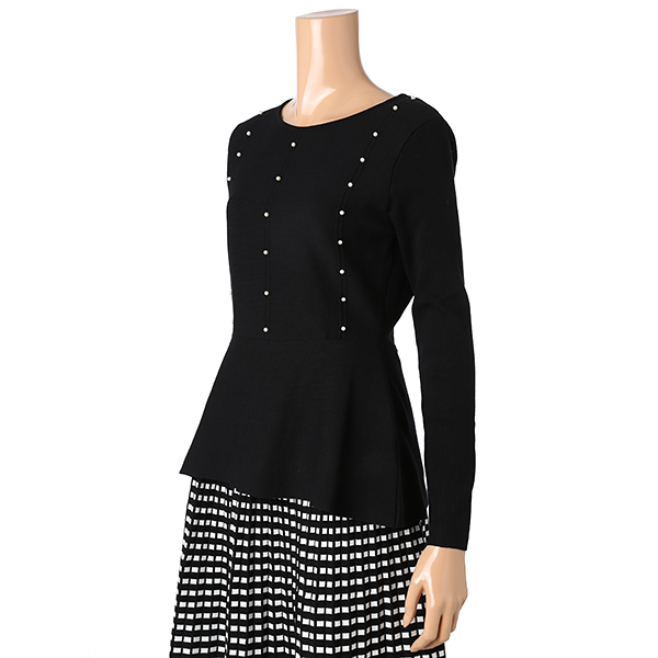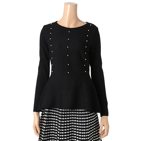 비딩포인트가 매력적인 페플럼스타일의 니트 탑입니다.