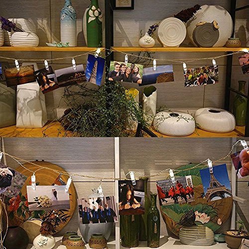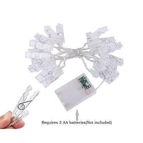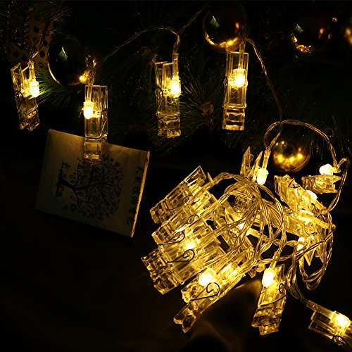 -Lights with clips for pictures, photos. 20 clear photo clips, each clip contains an LED and emits warm white light