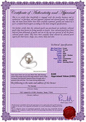 -. Title : PearlsOnly Chantel White 9.0-9.5mm AA Freshwater Sterling Silver Cultured Pearl Ring