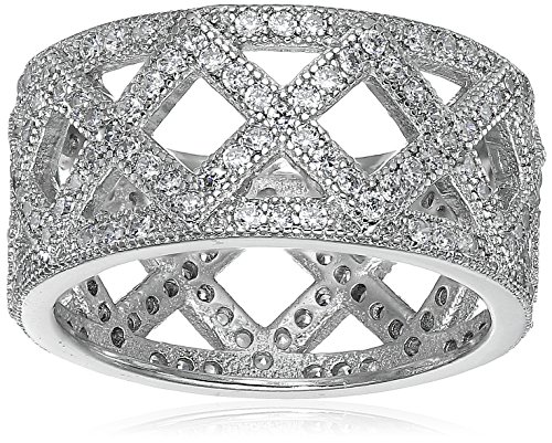 -. Title : Sterling Silver Cubic Zirconia "X" Pattern Band Ring