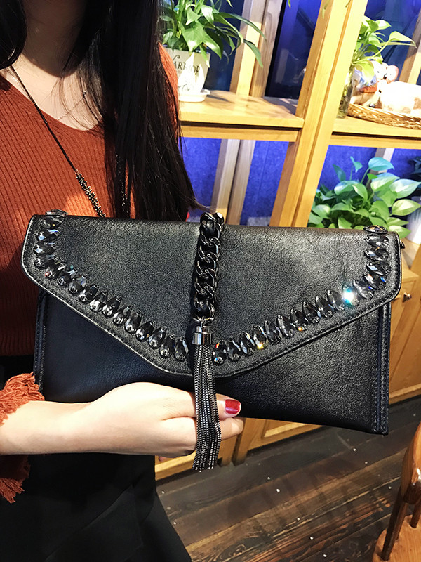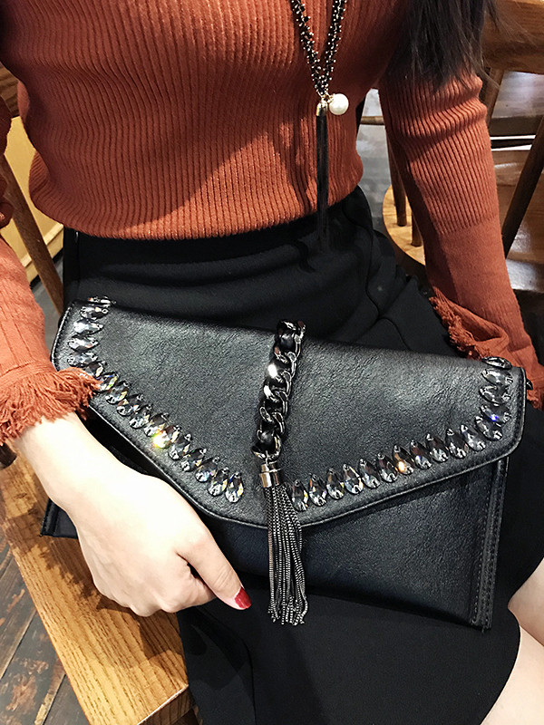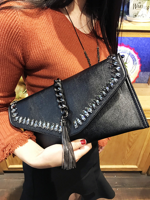 手拿包女新款秋冬大容量信封包时尚流苏手抓包单肩斜挎包潮女