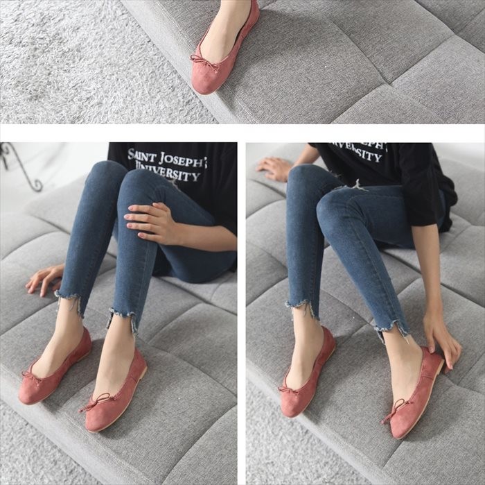 商品名:フラットパンプス レディース ペタンコ スエード調 リボン 2017 秋冬 ファッション 靴 婦人靴