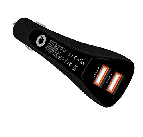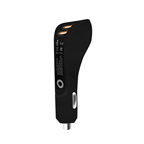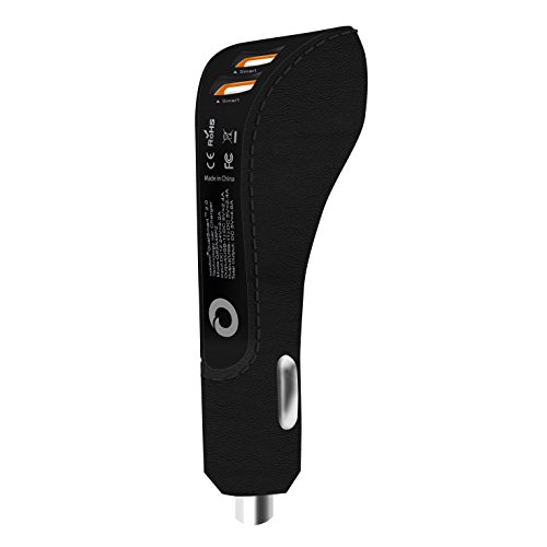 STYLISH DESIGN - this fast car charger has unique sleek stylish design, which makes it A USB Car Charger that looks fancy in Elegant Colors. Soft Comfortable Leather feeling Casing. Easy plug out with ergonomic waist line. Dimmed orange LED lights ports to match most cars dashboard and interior lights.