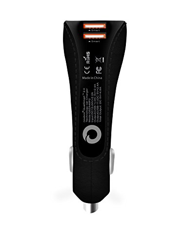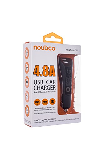 Noubco PwrBoost+ Dual USB Car Charger 4.8A 24W with QualSmart 2.0 Technology, for iPhone 7 / 6s / Plus, iPad, Galaxy S7 / Edge/ S6, HTC Nexus Moto Blackberry and Other - Black