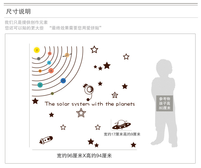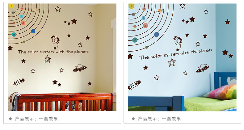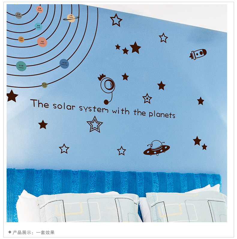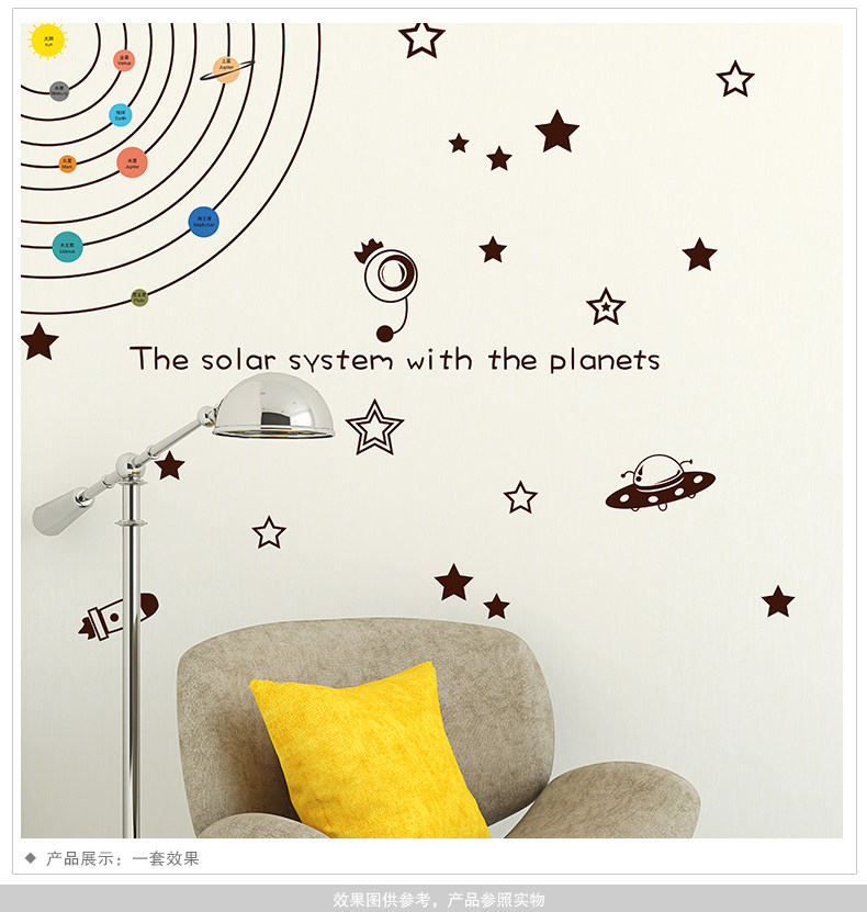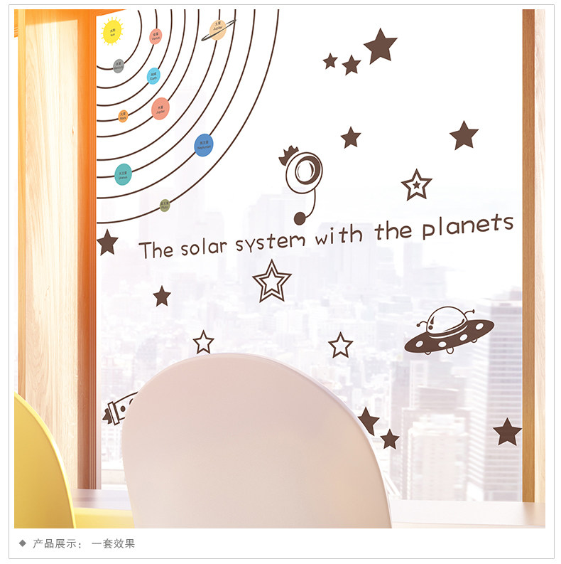 九大行星角图卡通可爱天文学墙贴幼儿园墙上装饰品壁纸自粘卧室