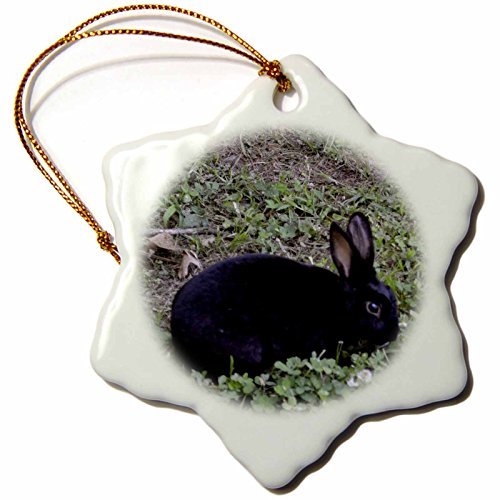 -. Title : Wild Bramble 3-Inch Porcelain Snowflake Decorative Hanging Ornament, Black Bunny Eating Clover